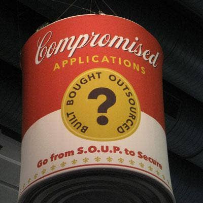 In case there was any ambiguity, Veracode helpfully adorned its expo floor space with placards explaining the correlation between soup and application security. Veracode even flew in actor Larry Thomas, best known for his role as the "Soup Nazi," to mingle with RSA attendees on the show floor.