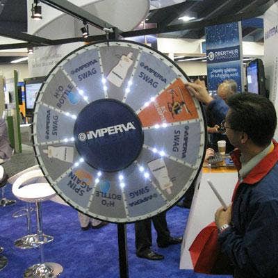 Security vendor Imperva was one of many vendors on the RSA 2013 show floor that used spinning-wheel games to attract attendees. And frankly, people were having a tough time resisting the allure of water bottles and "swag" Imperva gave them when they spun the wheel.