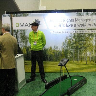 German security vendor Protected-networks.com used a golf theme as the backdrop for 8MAN, the latest release of its rights management software. RSA attendees could try their hand at putting, or they could choose to have their photo taken with this friendly looking fellow in the stylish green sweater.