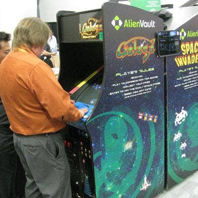 Who needs vendor swag when there are classic arcade games to be played? Security vendor AlienVault brought the 1980s to its show floor space with Space Invaders and Galaga, two quintessential chapters in gaming history.
