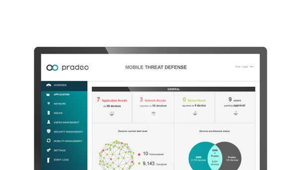 Pradeo Security Mobile Threat Defense protects devices used for work-related activities, corporate-owned or personal (BYOD), to prevent mobile data breach. The technology is integrated with key UEM (Unified Endpoint Management) and EMM (Enterprise Mobility Management) solutions to ensure CISOs and security heads can manage mobility and security from a unified platform. Gartner reviews have given the product four out of five stars.