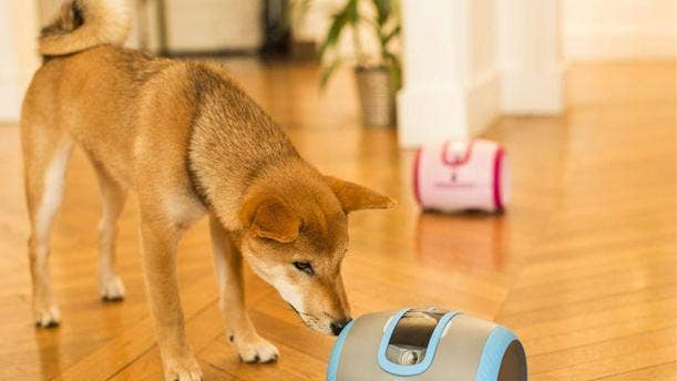 Laïka is a home robot that is designed to monitor and interact with a dog when the owner is away. Equipped with three wheels, an HD camera, a microphone and speakers, the robot can broadcast live video of the dog while the owner remotely controls the device. The robot, which also has an autonomous mode, can dispense treats, send alerts when the dog's barking gets too loud and allow the users to remotely speak to the dog.