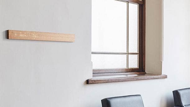 The Mui is a smart home display that is disguised as a 14-by-2-inch board of wood that hangs on the wall. With Wi-Fi and Bluetooth connectivity and a capacitive touch panel, the Mui supports a variety of applications, including the ability to display text messages, weather information and time, as well as play voice recordings and control light dimmers.
