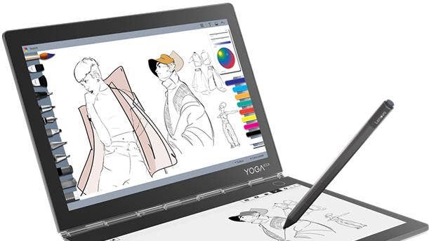 Lenovo's original Yoga Book consisted of a 10-inch tablet display attached to a secondary surface—which could be used either as a touch keyboard or secondary touch surface for writing or drawing with a digital pen. With the Yoga Book C930, set for showcasing at CES 2019, Lenovo is taking the concept further by going dual-display with the device. That means that along with a 10-inch QHD primary display, the secondary FHD display on the new Yoga Book can serve as an e-ink screen for drawing, an e-reader or a keyboard (Lenovo says typing productivity has increased by 22 percent with this model). The Yoga Book C930 also offers 13 hours of e-reading or eight hours of general use, along with strong portability (a weight of 1.71 pounds and thickness of 0.39 of an inch).