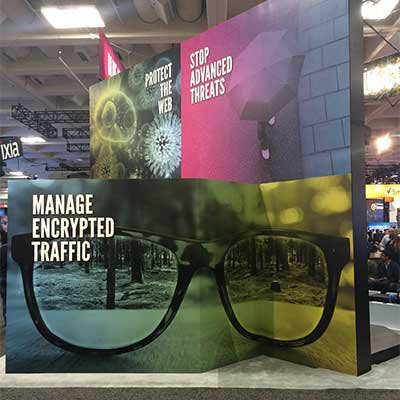 Security is a hard thing to illustrate sometimes, but vendors at RSA gave it their best shot. Here, we see that managing encrypted traffic is kind of like wearing sunglasses that give you special visionary powers. Or something like that. And they also protect the Web and stop advanced threats.