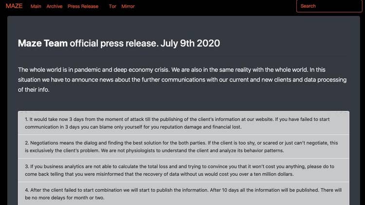 “Maze always wants to go after the biggest target possible. They are definitely pushing toward going after bigger and bigger targets, because bigger targets can pay a bigger ransom,” Liska said. “Maze wants organizations that can be humiliated into paying the ransom and won’t just shut the business down.”