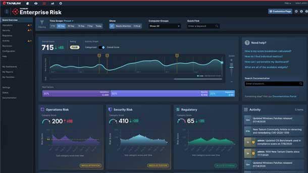 Down the road, Tanium hopes to be able to compare an organization’s risk score with that of peers who have a similar vertical focus or company size. The risk score has key metrics across operational, security and regulatory domains to assess business continuity, and also examines endpoint configuration and vulnerabilities as well as the mapping of technical controls to desired cybersecurity frameworks.