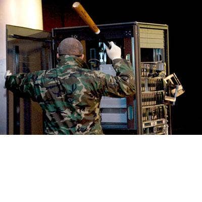 Compellent last year also rolled out a series of short YouTube videos featuring EMC SAN arrays being smashed, blown up, shot, and even bored to death, such as this one titled, "Smash the SAN."
