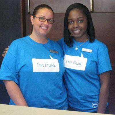 Dell adopted Compellent's "Fluid Storage" tagline to describe its vision of how storage should work for customers. That resulted in the words "I'm Fluid" popping up all over the Dell Storage Forum, including on the clothes the main desk personnel of the Hilton Walt Disney World hotel in Orlando, which is where the event was held.