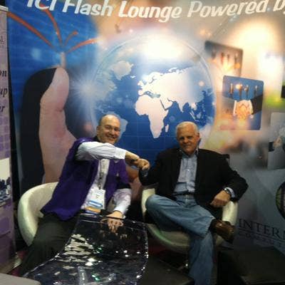 Tucci also managed to catch up with VARs during his walkabouts. Here, he is just finishing up a visit with Brad Malz, CTO of International Computerware Inc. (ICI), a Marlborough, Mass.-based solution provider.