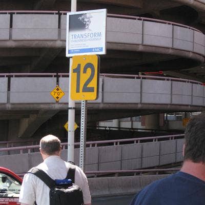 EMC took advantage of every opportunity to advertise EMC World, including EMC World signs all over the Las Vegas airport and on the little taxi waiting spots outside the terminal where one gets the pleasure of shuffling along for up to an hour with nothing to do except read them.