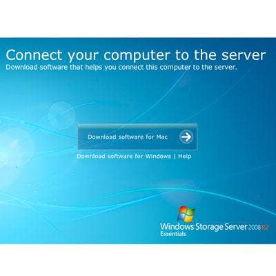 Out of the box, one of DataHarbor's two included drives is preformatted, and is clearly marked "Use this drive first." Following Windows updates and initial setup (which took about 20 minutes), a prompt appeared with a single instruction for setting up backup clients. Following that instruction on a Mac lead us to the page seen here. After a moment, a DMG was downloaded with connector software, and running it displayed prompts for the server address, creating user credentials, the administrator password and a description of the client machine being set up. Setting up clients on the Windows side involved fewer steps and was a little quicker. A final prompt offered to start Windows Server Launchpad at startup, shown next.