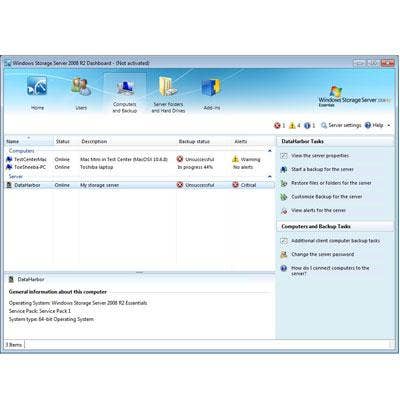 Under DataHarbor's hood is an Intel Atom-based (D525 1.8GHz processor) system running Microsoft Windows Storage Server Essentials 2008 R2 Standard with 2GB of RAM. For resellers or administrators familiar with Windows Server, this is a huge benefit because there's really no learning curve for first-time installation and use. Just plug in a monitor, keyboard and mouse and set up DataHarbor like any other system running Windows Server. After that, it can be remotely administered using standard Microsoft tools and the included Dashboard (more on that later).