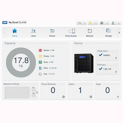 Whether you're a VAR, managed service provider or IT administrator, WD's browser-based management interface is among the best we've seen. A dashboard provides at-a-glance access to the most critical pieces of NAS data, including free space available, system health, connected users and active alerts. A circular scrollbar at the top neatly categorizes all system functions and makes it quick for setting all system options and features. For a starting price of $529 unpopulated, the DL4100 provides an excellent value for VARs seeking a business-savvy NAS that will fit into most environments.