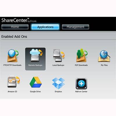 D-Link includes software for backing up Windows PCs and supports Apple Time Machine for backing up from Macs. There's also email alerts for system health and volume capacity warnings, and support for iSCSI, FTP, NFS, AFP and other protocols. The 340L supports 3.5-inch SATA I and II drives in capacities of 4 TB and higher, 256 user accounts, 32 groups and 28 shares. Simultaneous connections are limited to 64 SMB and 10 FTP.
