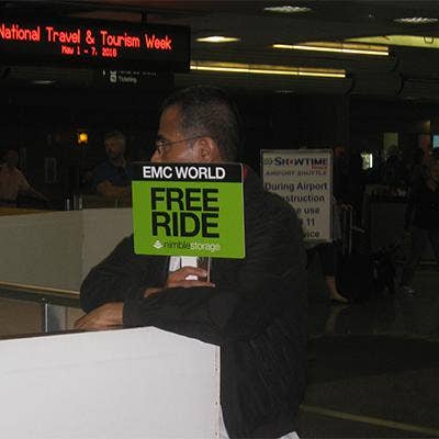 Even before leaving the Las Vegas airport, visitors were hit by competitors looking to take advantage of the crowds visiting EMC World.