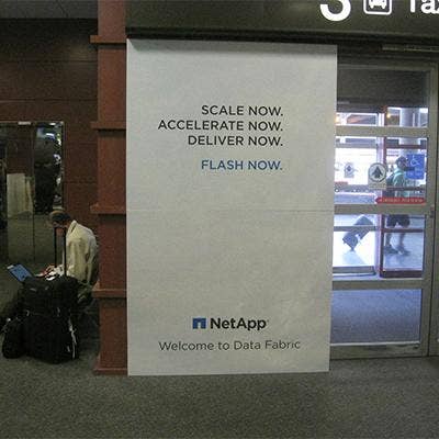 The company had plenty of signs and people waving NetApp placards at the Las Vegas Airport serving a dual purpose: direct the NetApp and SolidFire people to its sales kickoff and grab the eyeballs of EMC World attendees.