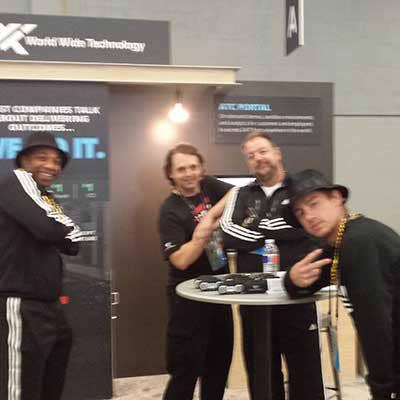 The crew from World Wide Technology, a large Dell EMC solution provider, dressed up as Run DMC as part of a Twitter contest offering a $200 Adidas gift card as a prize.