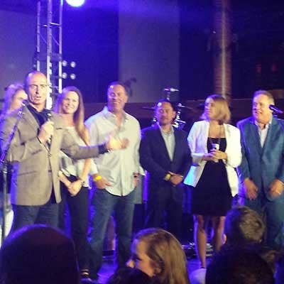 Brown performed for a private partner appreciation party that got the night off to a rowdy start with a performance of some of his eight-piece band's original songs, as well as some covers of songs by bands from Queen to Kings of Leon.