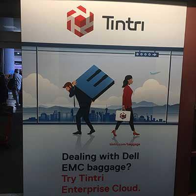 The competition for mindshare began even before leaving the Las Vegas airport. Tintri, a Mountain View, Calif.-based all-flash storage array vendor, offered to help deal with "Dell EMC baggage."