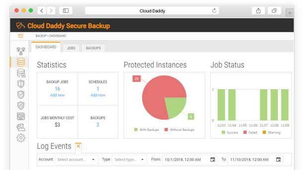 Cloud Daddy Secure Backup provides data backup and disaster recovery, advanced security and information management for managing and organizing backups and scaling via a single pane of glass. Designed for Amazon Web Services environments, it provides cloud-native capabilities including AI alerting, anti-malware and anti-ransomware intelligent threat detection, and infrastructure management to help AWS customers of any size protect and manage data across public, private, government and hybrid clouds.